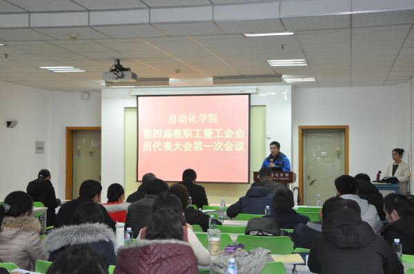 12月7日下午,det365登录网站主页第四届教职工暨工会会员代表大会第一次会议在教四楼1403报告厅召开,会议主要议程分别由大会秘书长周慧同志和大会执行主席于东江同志主持,学院新一届当选代表及部分列席代表出席了会议。
