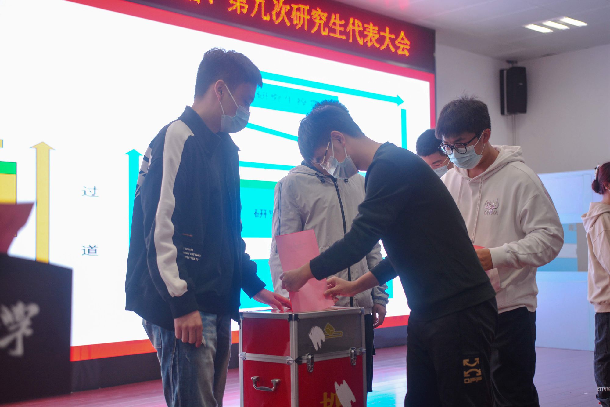 最后,在场本科生、研究生学生代表表决通过了选举办法(草案)和总监票人、监票人建议名单,并根据会议议程和选举办法,以无记名差额选举的方式投票选出det365登录网站主页第九届学生会、研究生会主席团成员,以及det365登录网站主页出席det365登录网站主页第九次学生代表大会、第九次研究生代表大会的学生代表。同时,表决通过了det365登录网站主页第九次学生代表大会、第九次研究生代表大会det365登录网站主页常任代表候选人预备人选名单。
