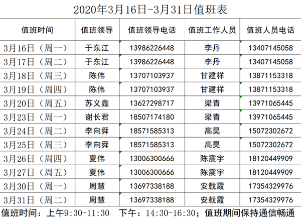 det365登录网站主页2020年3月16日-3月31日值班安排
